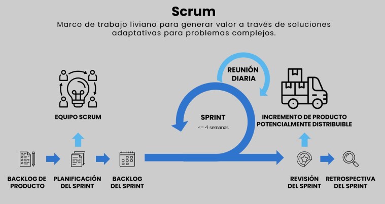 Scrum es un marco de trabajo liviano que ayuda a las personas, equipos y organizaciones a generar valor a través de soluciones adaptativas para problemas complejos. Scrum ayuda a poner de manifiesto o en práctica los valores y principios que definen el pensamiento ágil y Lean a través de una serie de lineamientos simples pero efectivos que habilitan a las personas y equipos para ser más productivos mientras mantienen la energía y la motivación al hacer su trabajo.